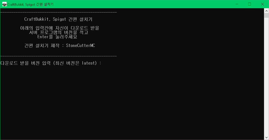 원하는 버전을 입력하면 빌드가 시작됩니다. 빌드가 끝나면 창이 닫히고 Builder가 있던 폴더에 입력한 버전의 CarftBukkit과 Spigot이 빌드 되어 나옵니다. 빌드 된 파일의 이름을 server로 바꿔줍니다. 2019년 11월 3일 기준으로 1.8 이상의 버전들이 빌드 되는 것을 확인했습니다.