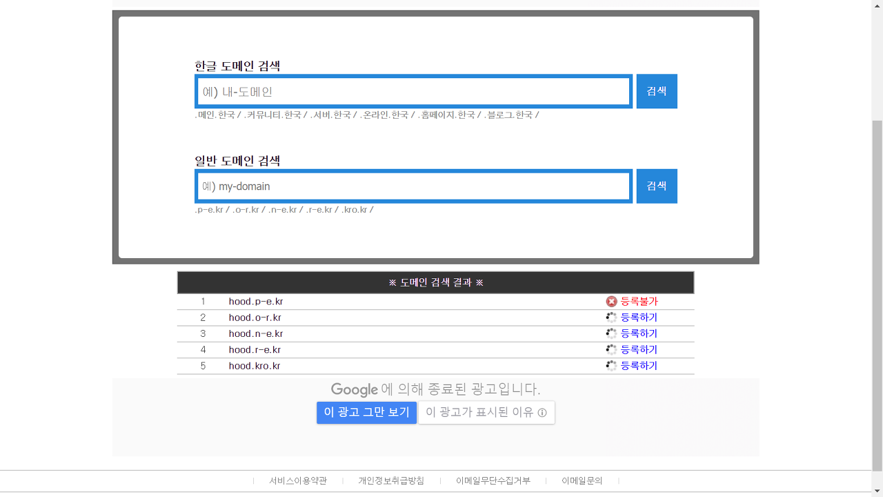 검색한 도메인에서 등록 가능한 도메인을 선택해 등록해줍니다. (kro.kr 추천)