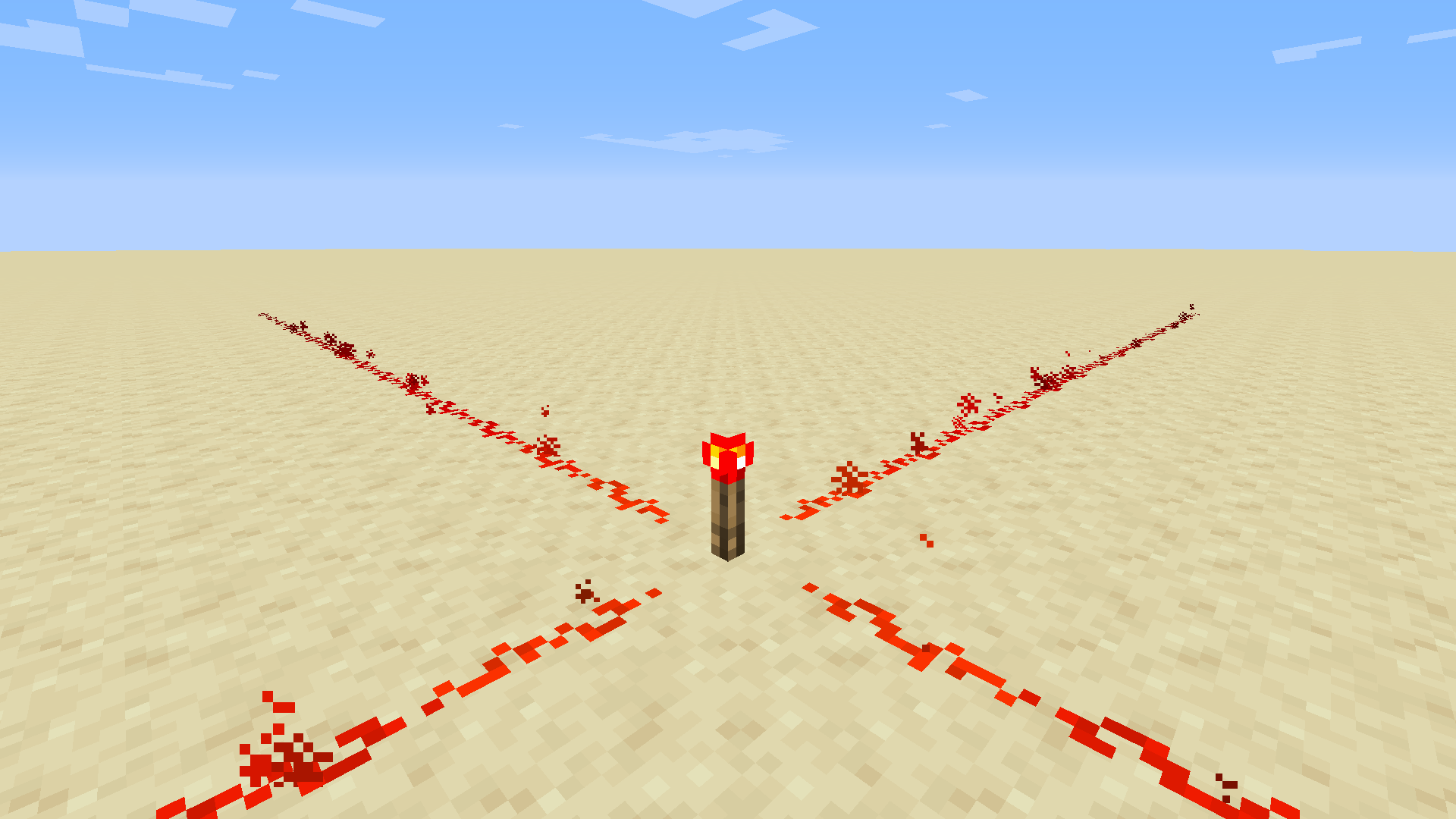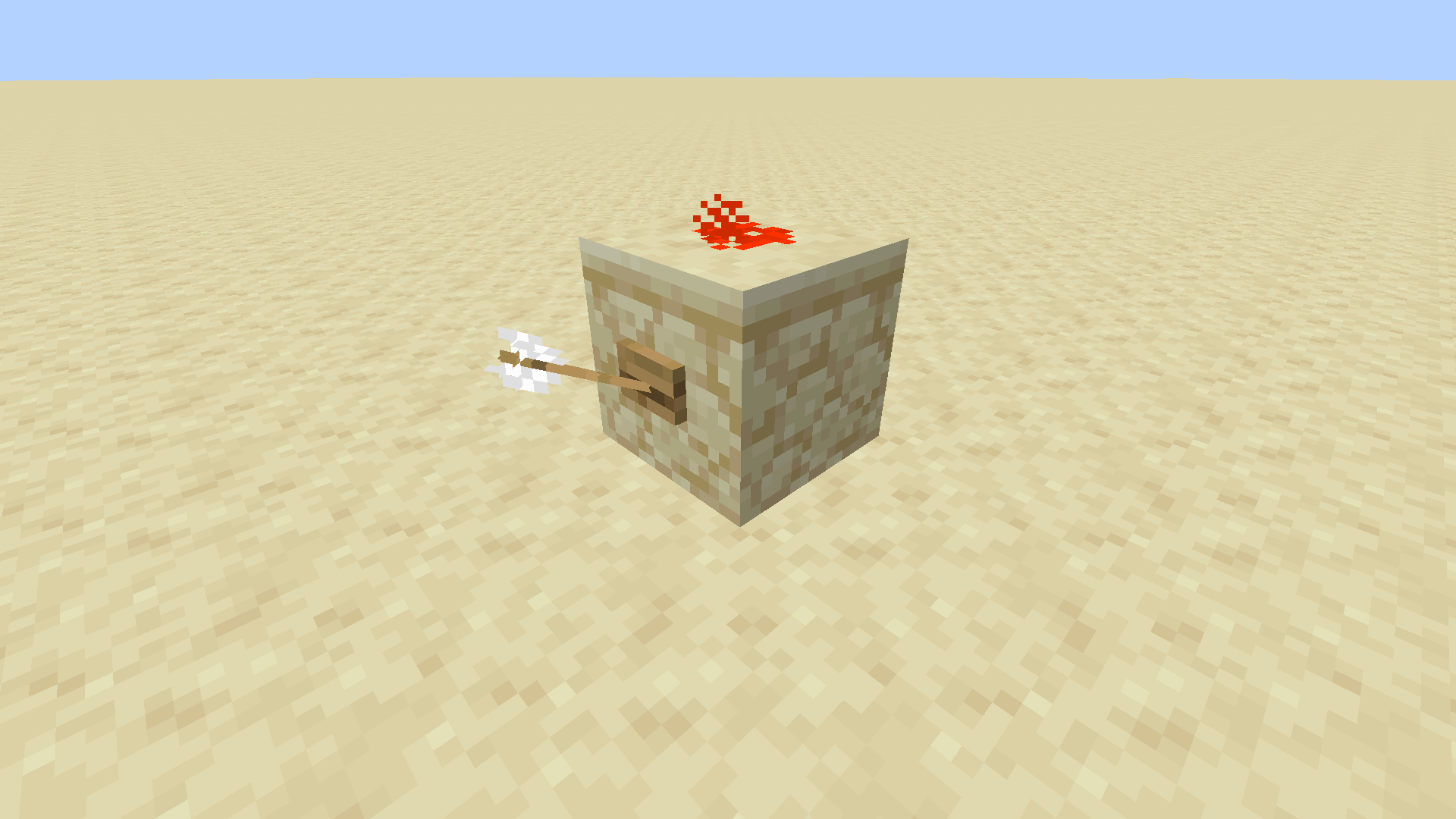레드스톤 횃불이 설치된 블록에 전류가 흐르면 레드스톤 횃불이 꺼지고 전류를 흘려보내지 않게 됩니다. 블록의 바닥을 제외한 5면에 설치할 수 있습니다.