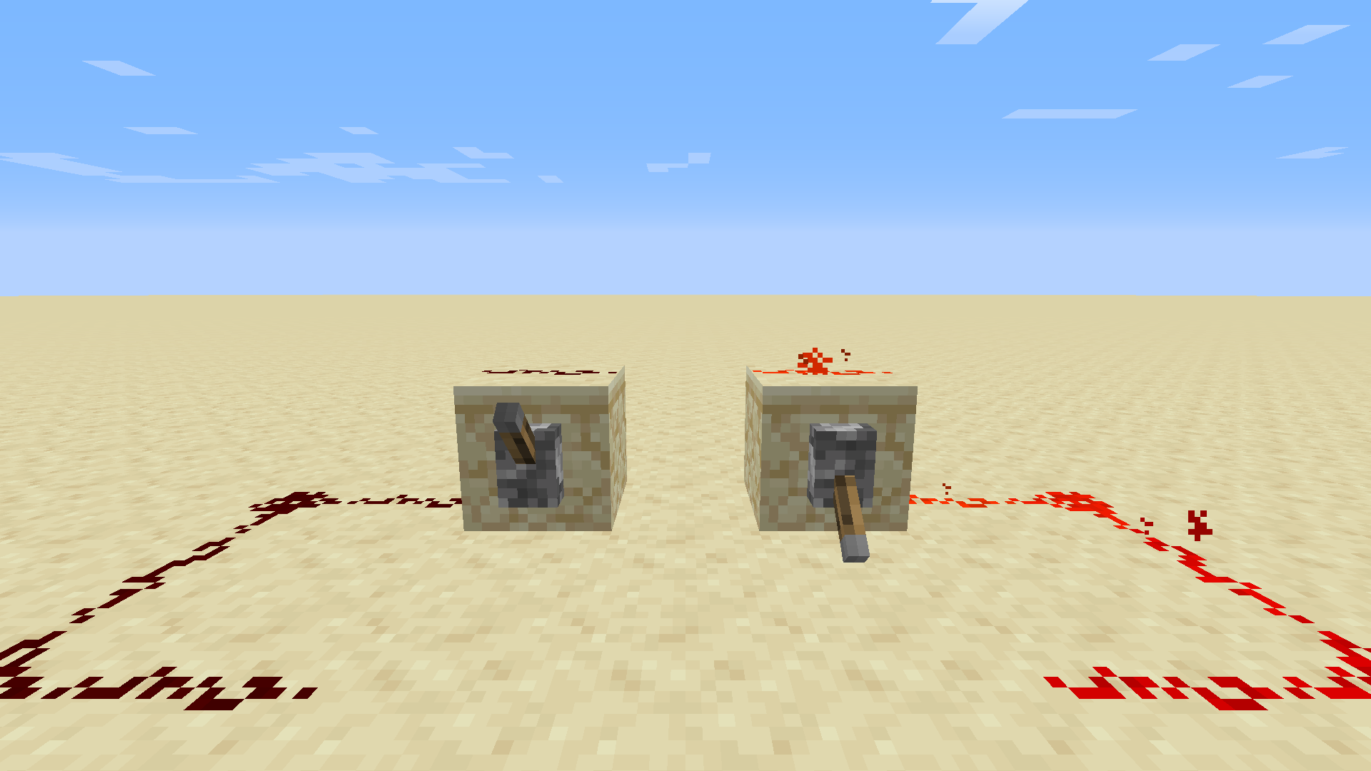레버는 전원을 켜고 끌 수 있는 블록입니다. 활성화된 레버의 주위와 활성화된 레버가 설치되어 있는 블록에 세기 15의 전류를 흘려보냅니다. 블록의 모든 면에 설치가 가능합니다.