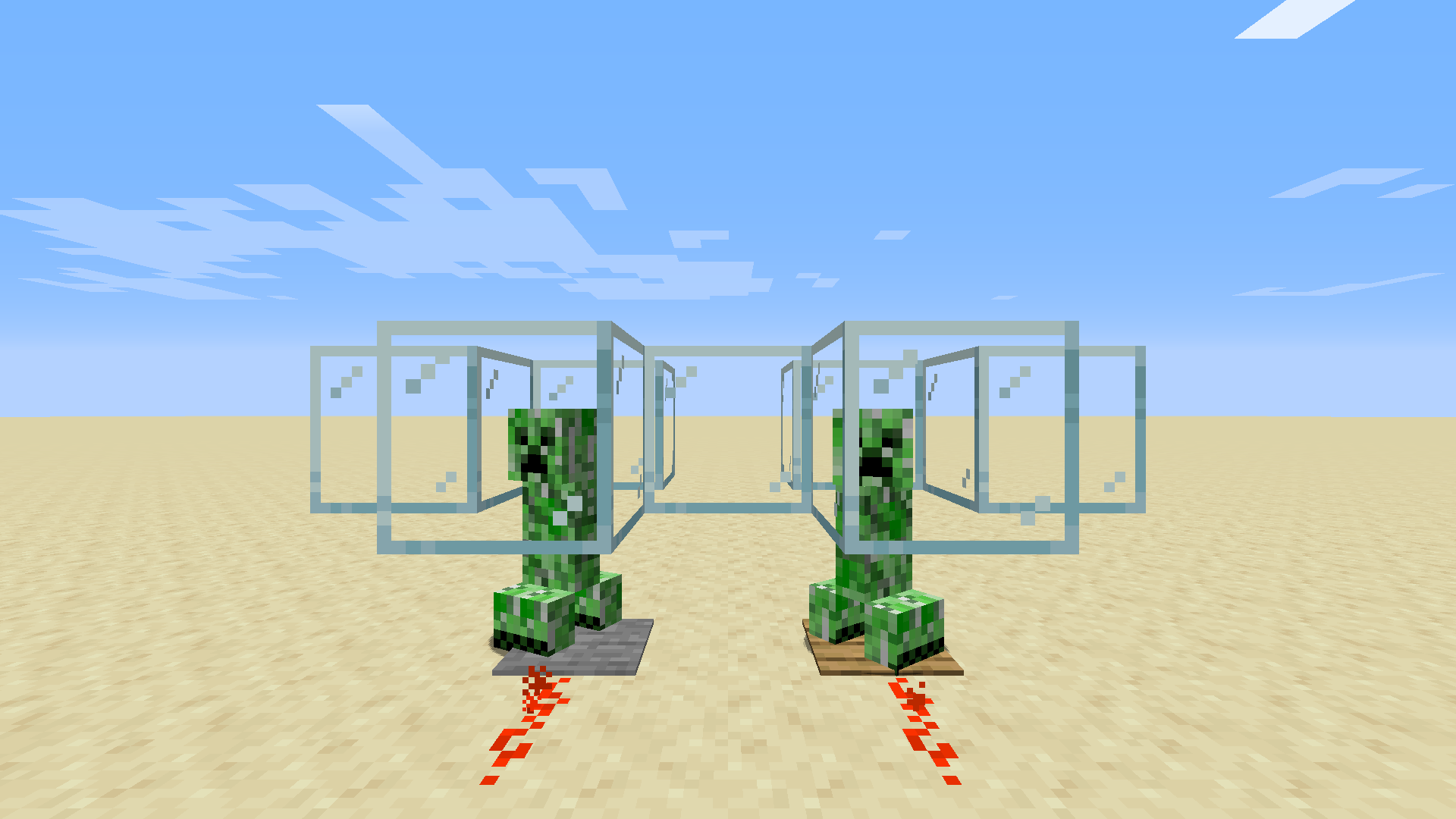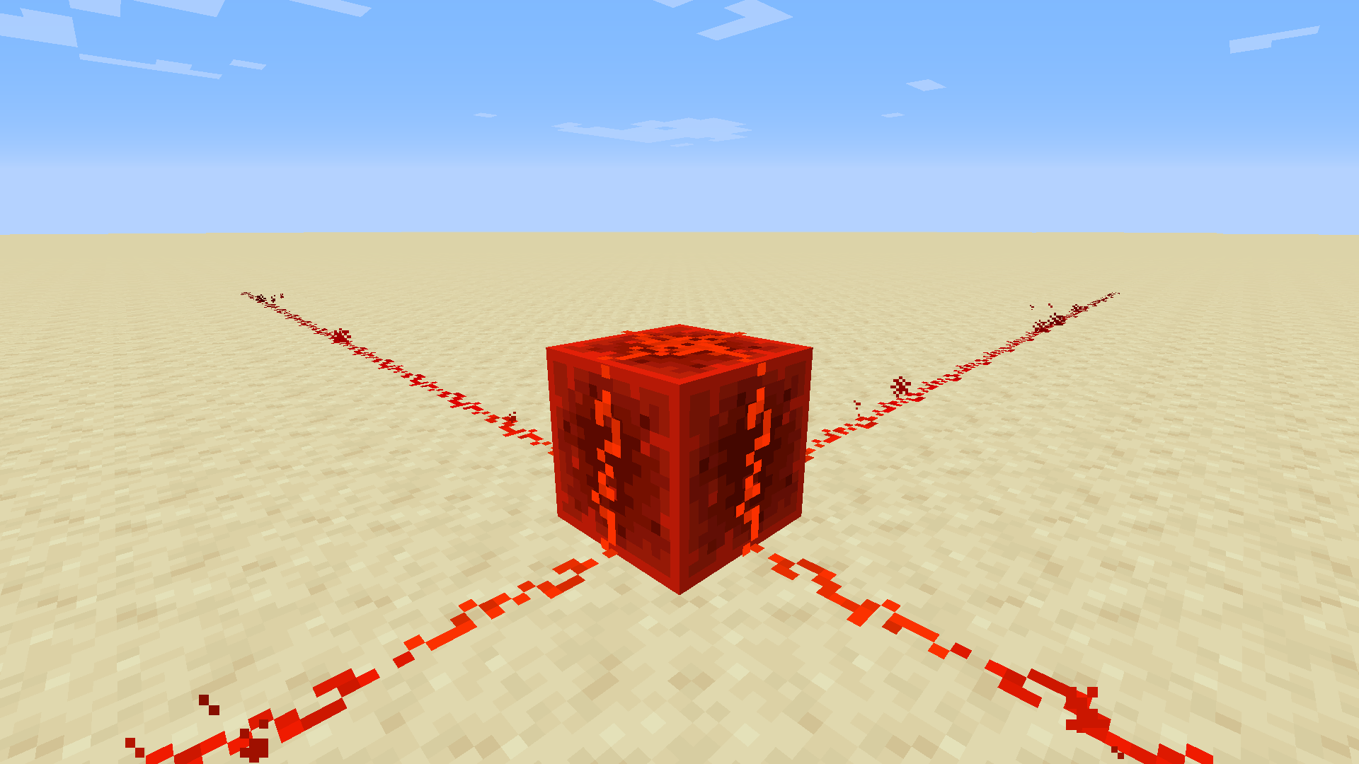 레드스톤 블록은 어떤 경우에도 꺼지지 않고 무한히 전류를 내보내는 블록입니다. 모든 면에서 세기 15의 전류가 흐릅니다.