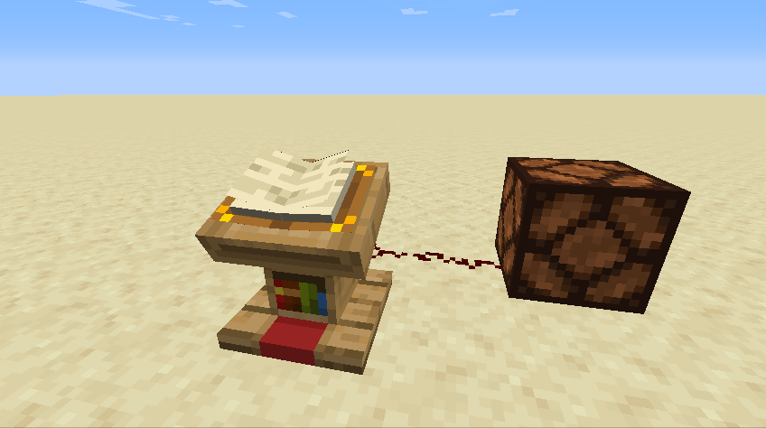 독서대는 책과 깃펜 또는 글이 쓰인 책을 올려두고 다수의 플레이어가 동시에 책을 읽을 수 있게 해주는 블록입니다. 특정 플레이어가 책의 페이지를 넘기면 읽고 있는 모든 플레이어의 페이지가 넘어가며 책을 덮어도 읽던 페이지가 독서대에 저장됩니다.