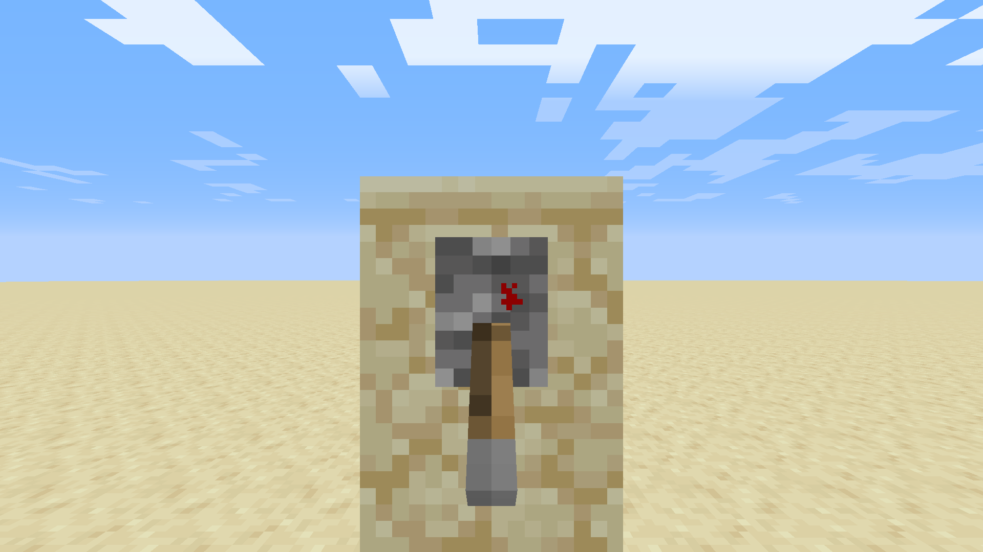 활성화된 상태의 레버에서는 붉은색의 레드스톤 입자가 나타나 쉽게 구분할 수 있습니다.