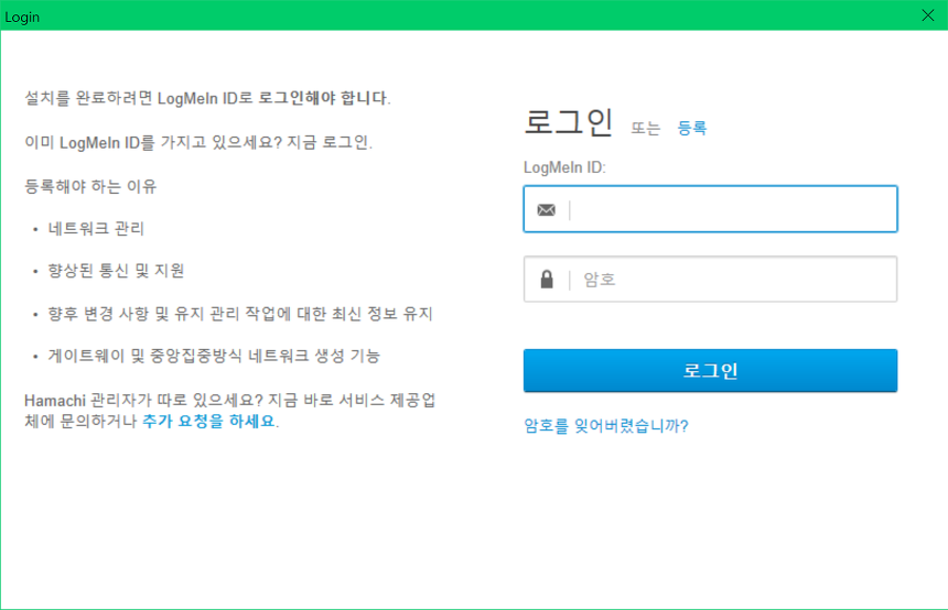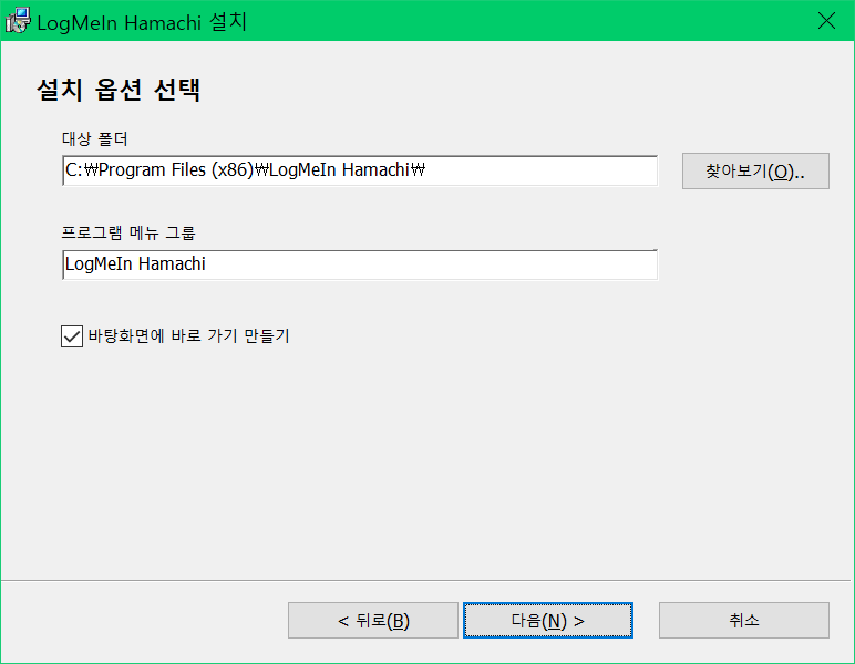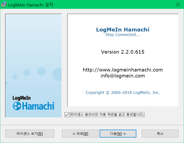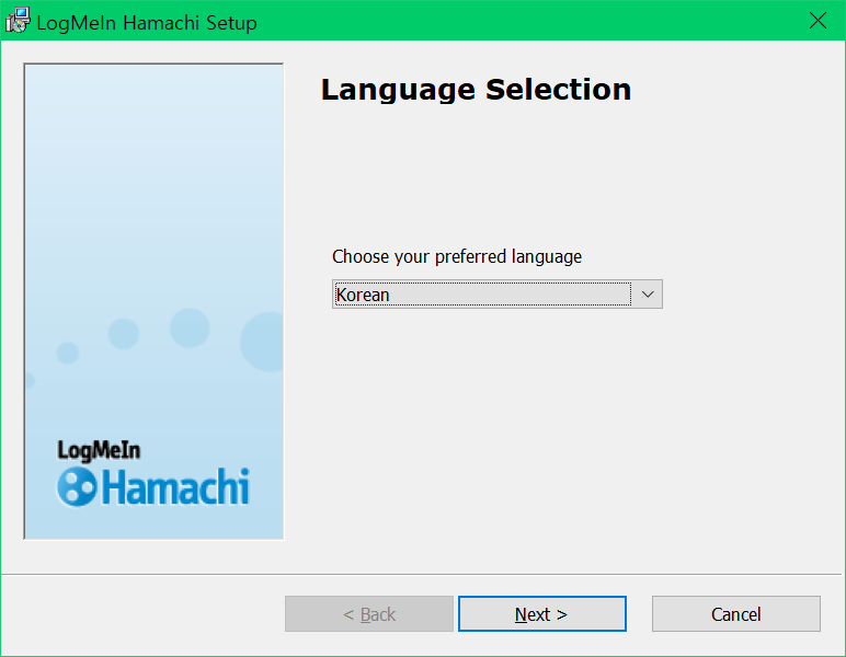 다운로드한 hamachi.msi를 실행하면 설치가 시작됩니다. Korean으로 선택하고, Next >