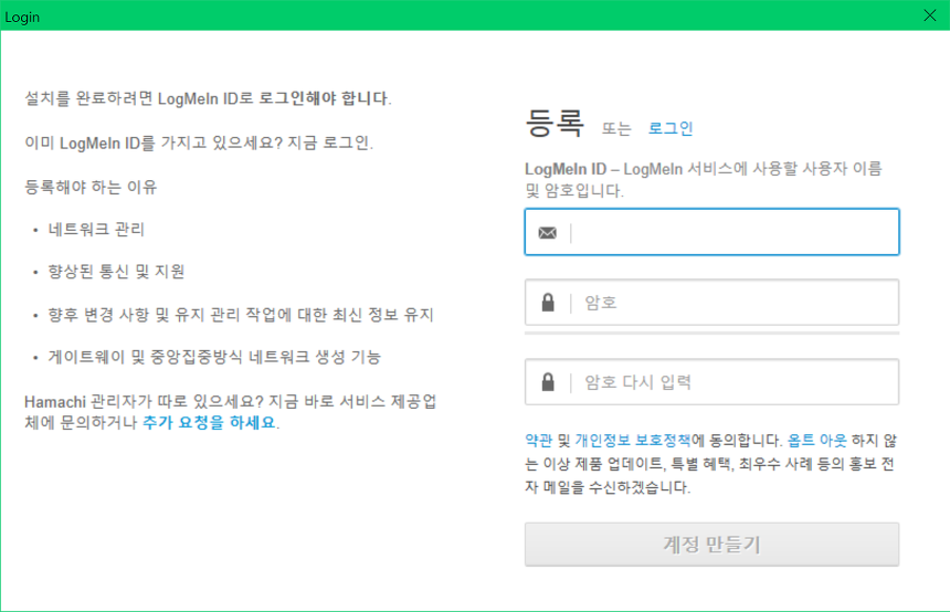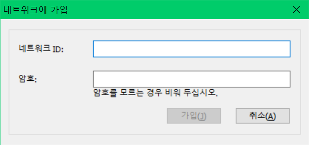 서버를 여는 사람이 만든 네트워크의 네트워크 ID와 암호를 입력한 후 가입(J)을 누르면 가입이 되고 서버에 들어갈 수 있게 됩니다.