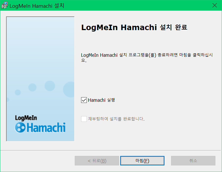 새 네트워크를 만들었습니다. 하마치 전원이 켜져 있고, 네트워크 이름 왼쪽에 초록 불이 들어와 있으면 서버를 열 준비가 끝났습니다.