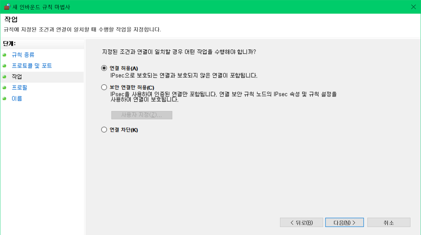 연결 허용(A)을 선택하고 다음(N)을 눌러줍니다.
