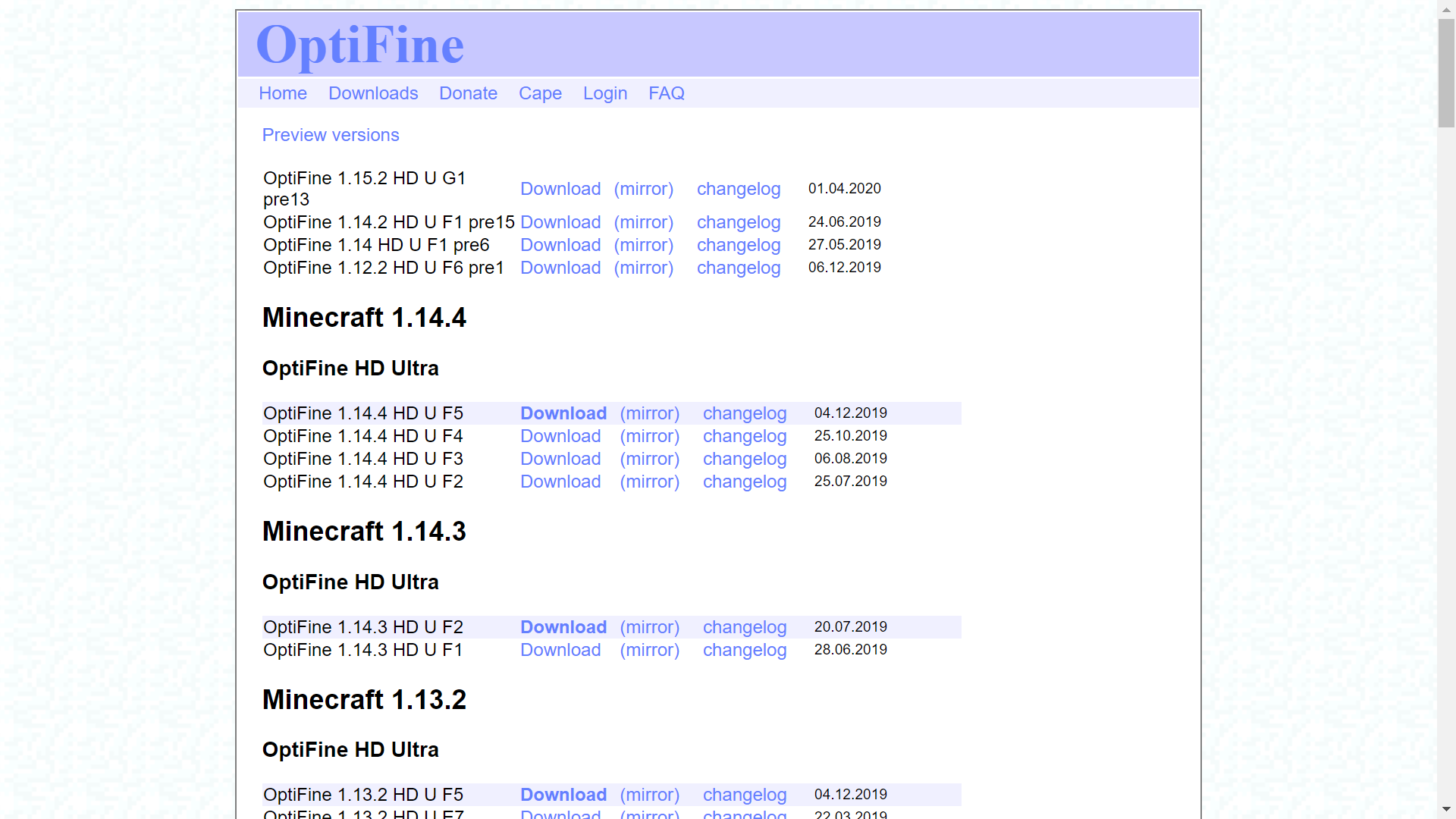 OptiFine Downloads