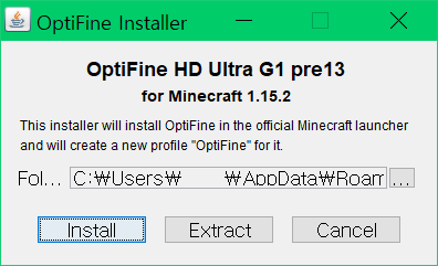installer를 다운로드해 OptiFine과 같은 폴더 안에 넣고 OptiFine의 파일 이름을 inst로 수정한 후 실행시켜줍니다.
